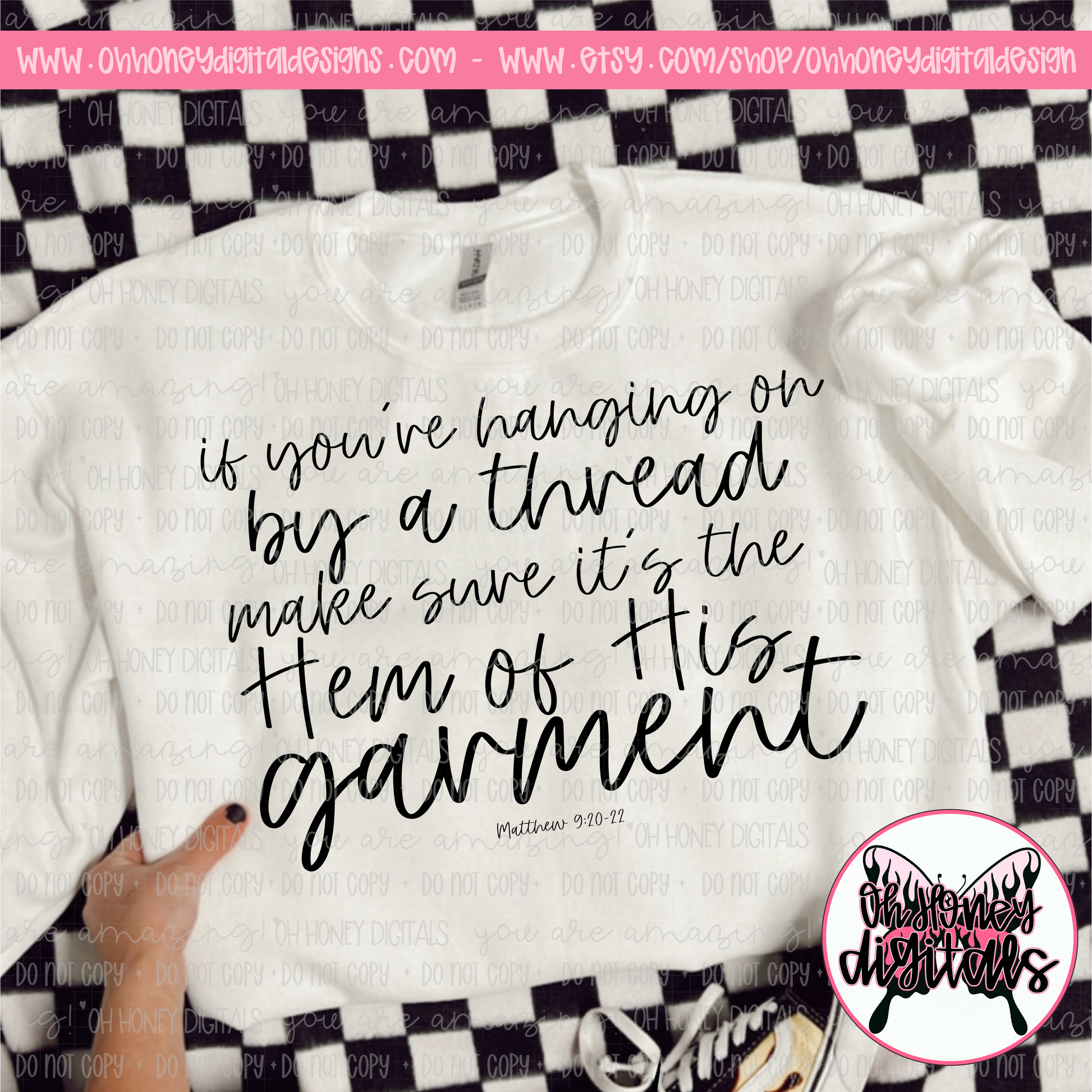 If You're Hanging on By a Thread, Make Sure it's the Hem of His Garment - Black & White Version Included - PNG FEBRUARY 2025